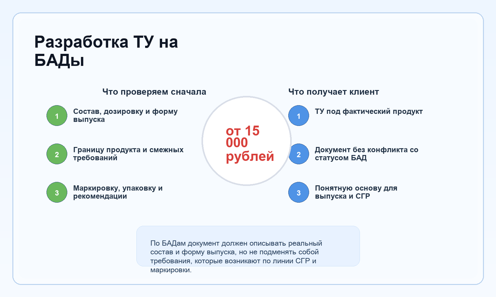 Именно поэтому по этой категории мы не стартуем с голого "напишите ТУ". Сначала определяется продуктовая рамка, иначе документ быстро начнет расходиться с этикеткой, инструкцией по применению и дальнейшими действиями по СГР.