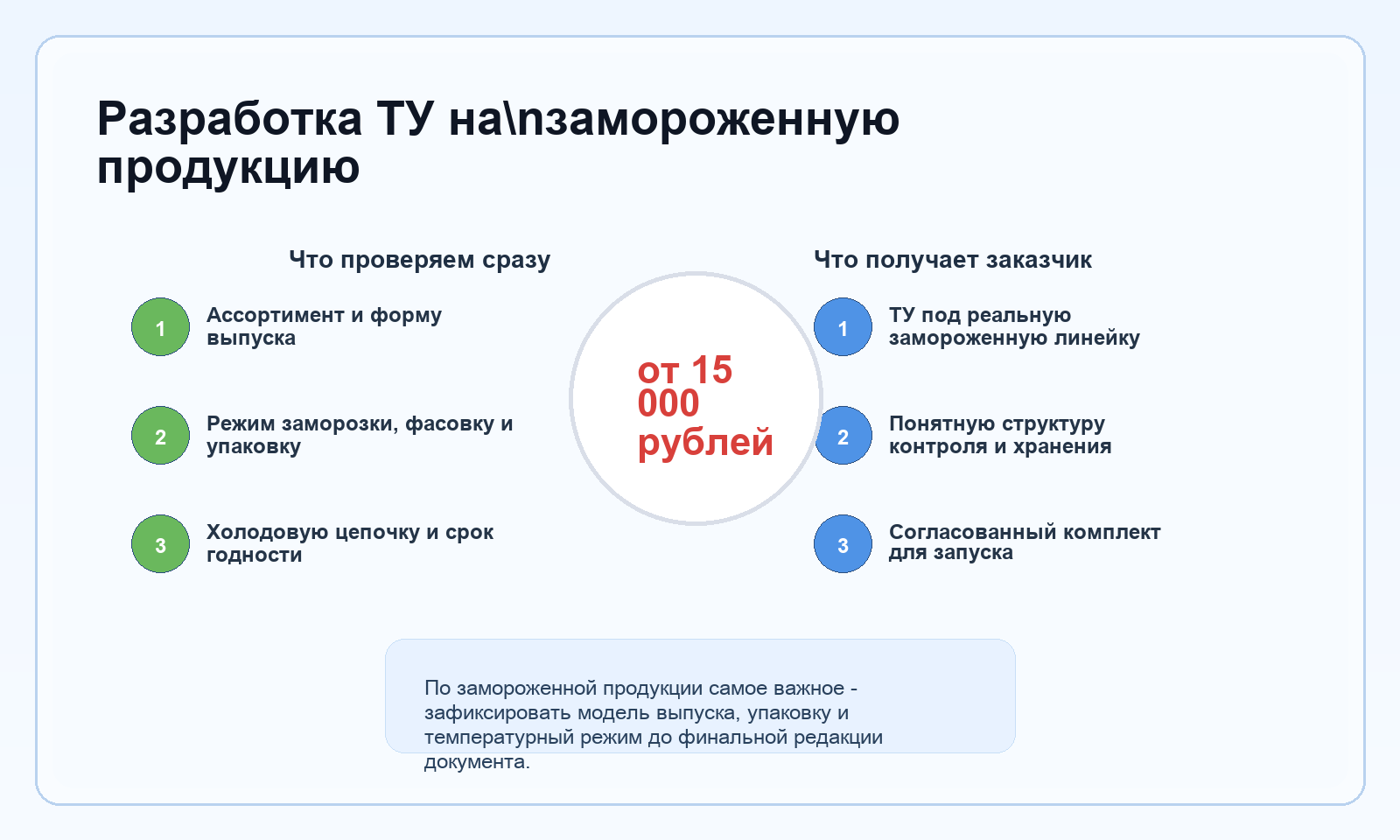 По теме «ТУ на замороженную продукцию» в Новосибирске разложим оформление по шагам: что подготовить на старте, где чаще всего возникают возвраты и как пройти процесс без лишних пауз между этапами.